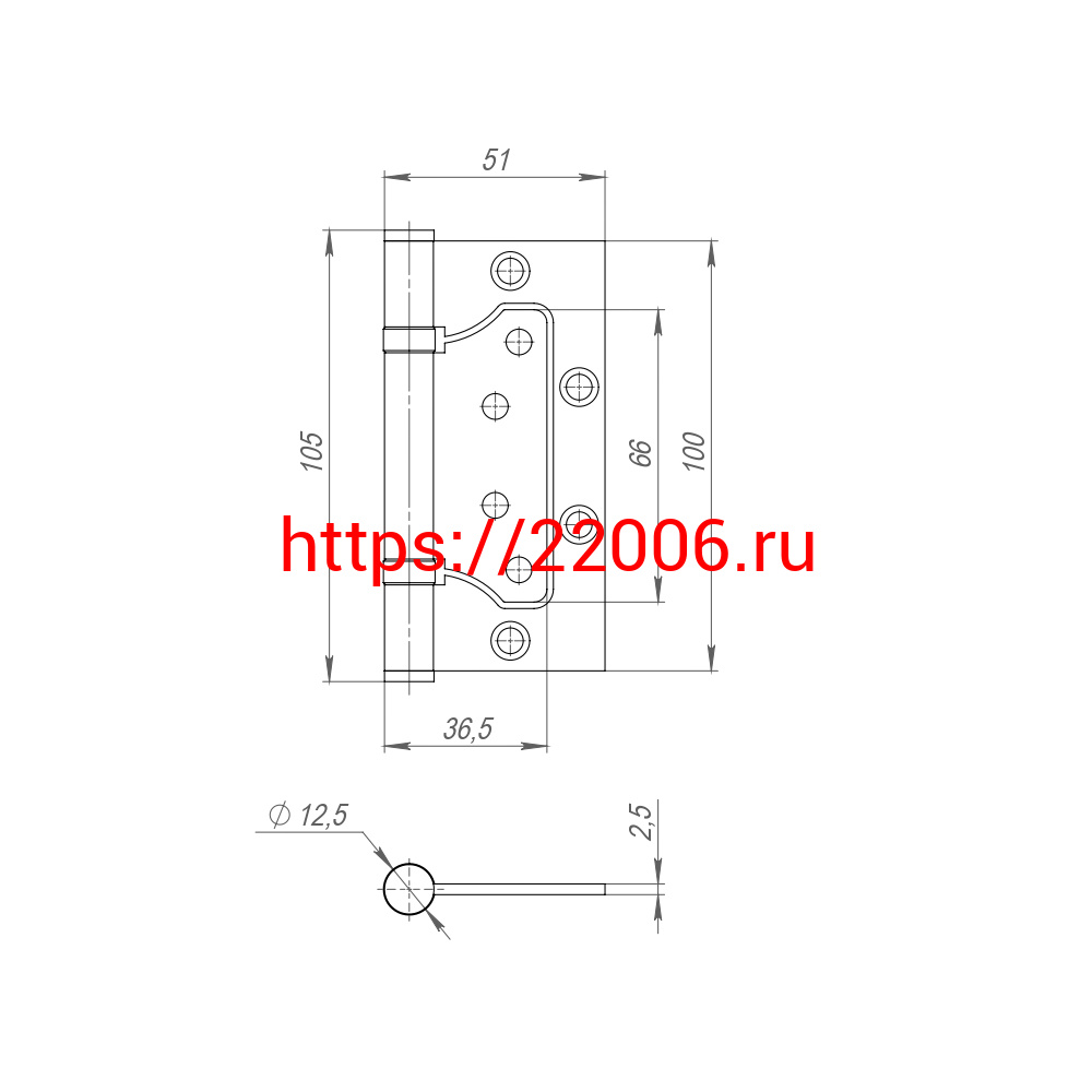 - Петля Fuaro (Фуаро) из нержавейки универсальная без врезки IN4500W INOX 304 (500-2BB 100x2,5) в Полевском недорого