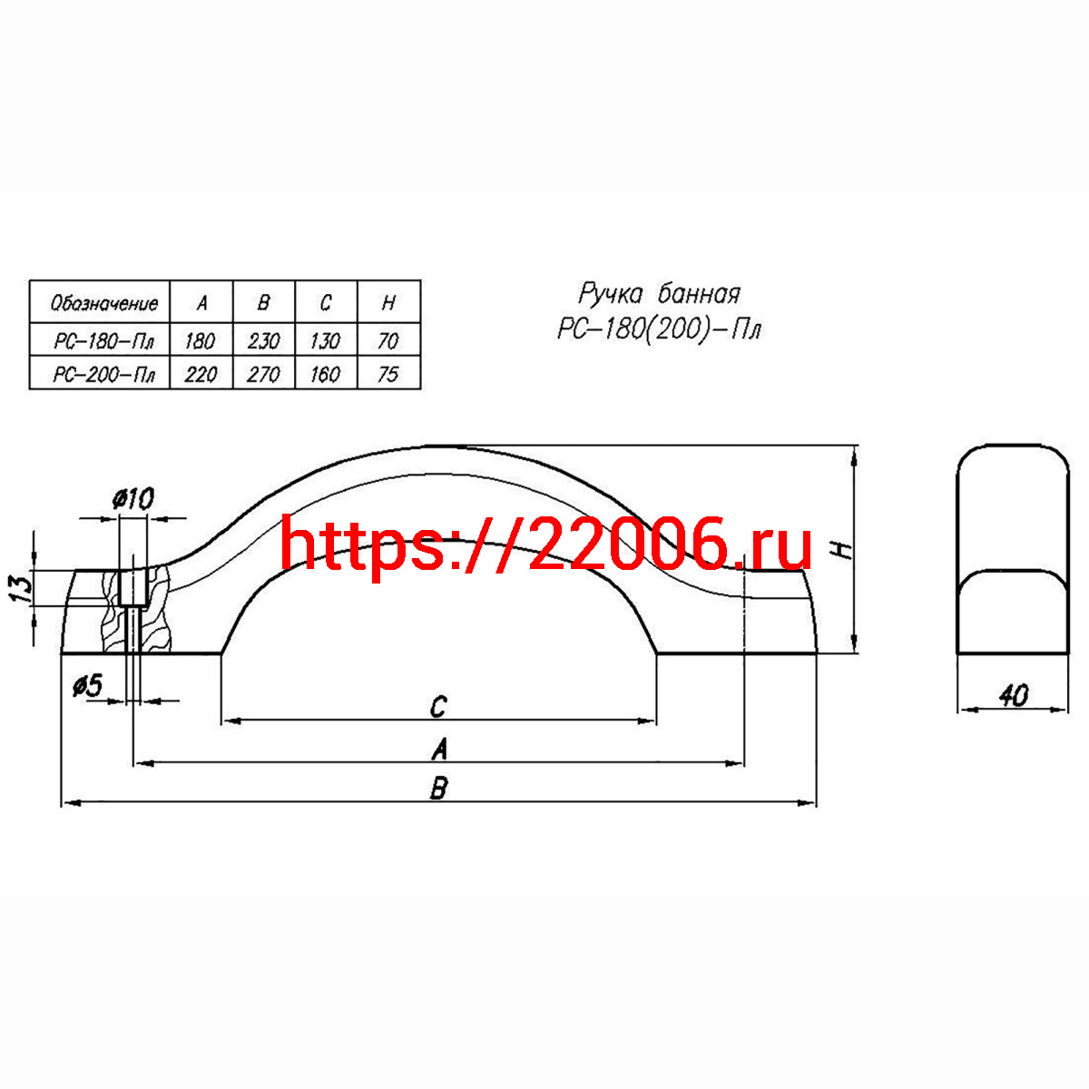 - Ручка-скоба банная РС-180 плоская в Полевском недорого