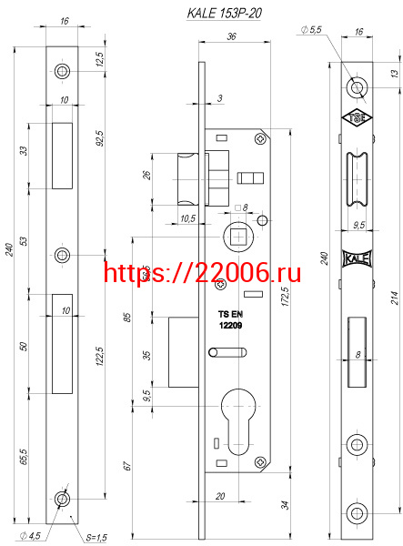 - Корпус Kale kilit (Кале килит) узкопрофильного замка с защёлкой 153/P (20 mm) w/b (хром) в Полевском недорого