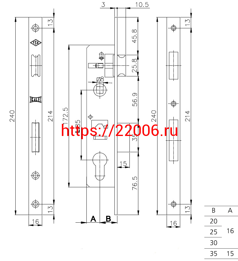 - Корпус Kale kilit (Кале килит) узкопрофильного замка с защёлкой 153/P (25 mm) w/b (хром) в Полевском недорого