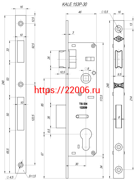 - Корпус Kale kilit (Кале килит) узкопрофильного замка с защёлкой 153/P (30 mm) w/b (хром) в Полевском недорого