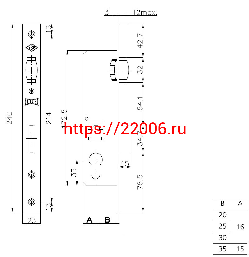 - Корпус Kale kilit (Кале килит) узкопрофильного замка с роликовой защёлкой 155 (30 mm) w/b (никель) в Полевском недорого