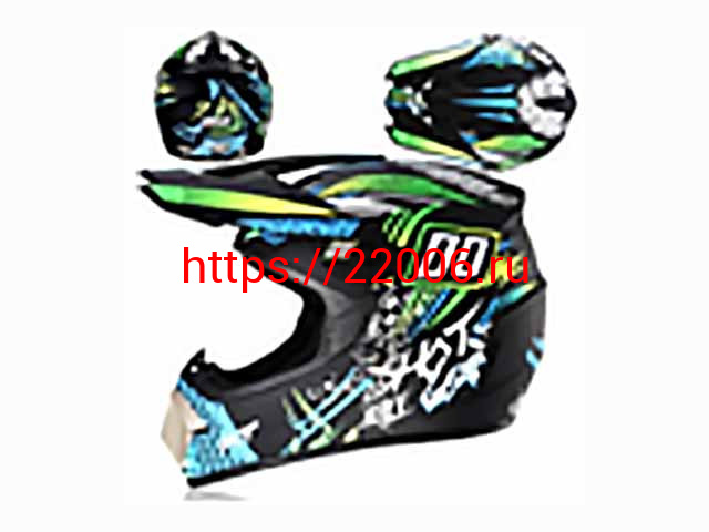 - Мотошлем VIRTUE MD-905 Кросс черный матовый с голубо-салатовым граффити (M) в Полевском недорого