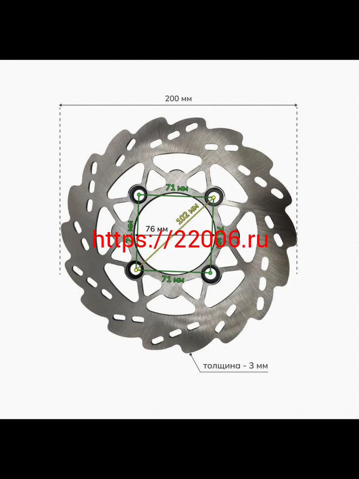 - Диск тормозной передний (200x76x3) (отв: 4x71) TTR-125 в Полевском недорого