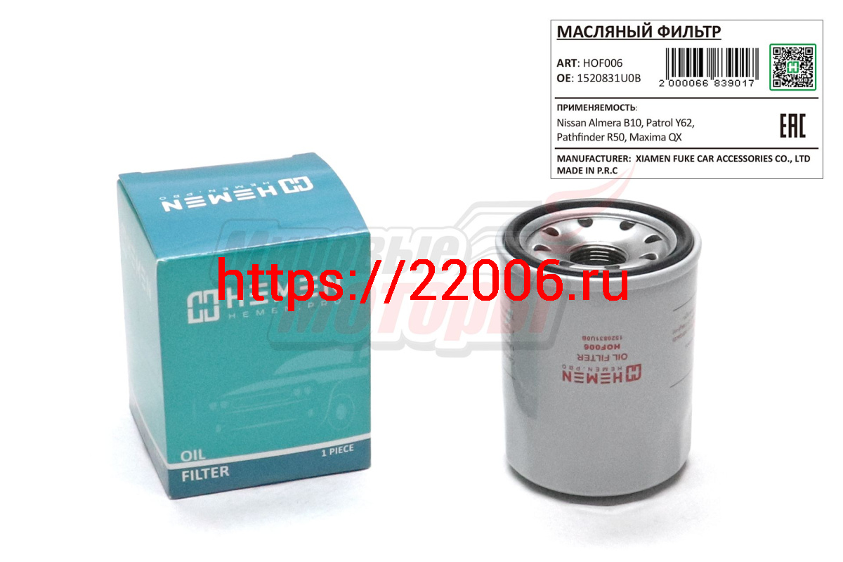 - Фильтр масляный Nissan Almera B10, Patrol Y62, Pathfinder R50, Maxima QX (HOF006) в Полевском недорого