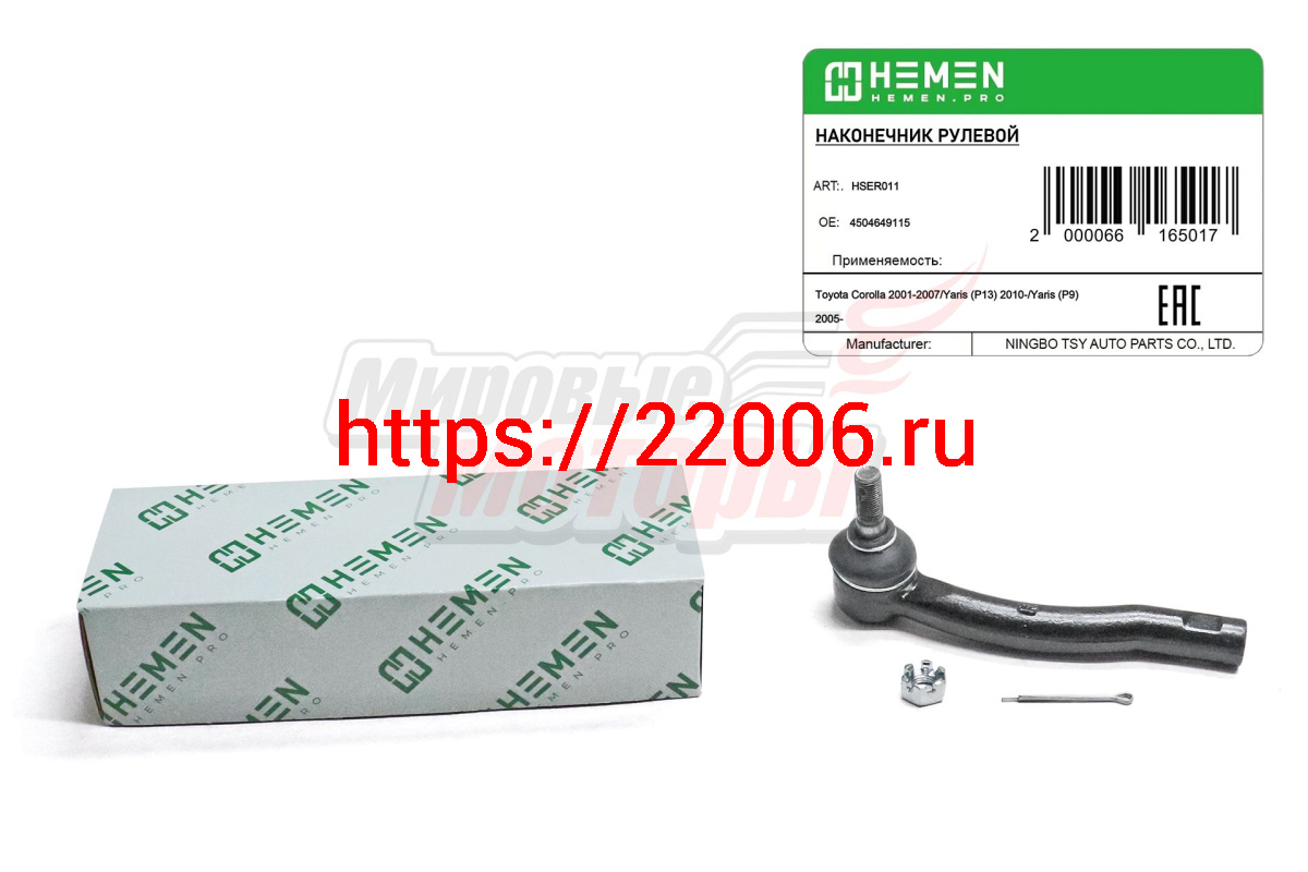 - Наконечник рулевой правый Toyota Corolla 02-, Yaris 05- (HSER011) в Полевском недорого