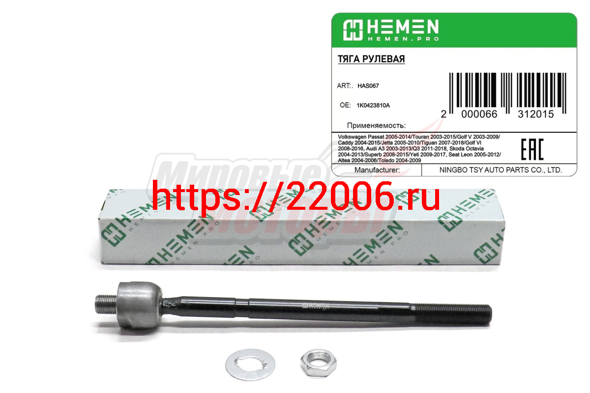 - Тяга рулевая VW Passat 05-,Golf V 03-,Golf VI 08-,Touran 03-, Audi A3 03-, Skoda Octavia 04- (HAS067) в Полевском недорого