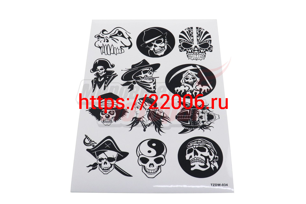 - Наклейки: черепа черно-белые MV22A4D034 (12 элементов)(21х30) в Полевском недорого
