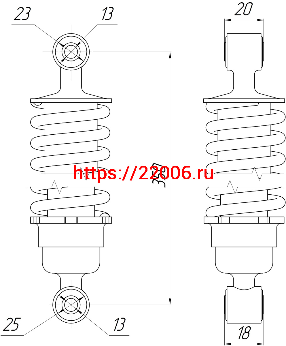 - Амортизатор зад. L-350, D1-23, d1-13,Н1-20, D2-25, d2-13, Н2-18 YBR125 (пара) в Полевском недорого