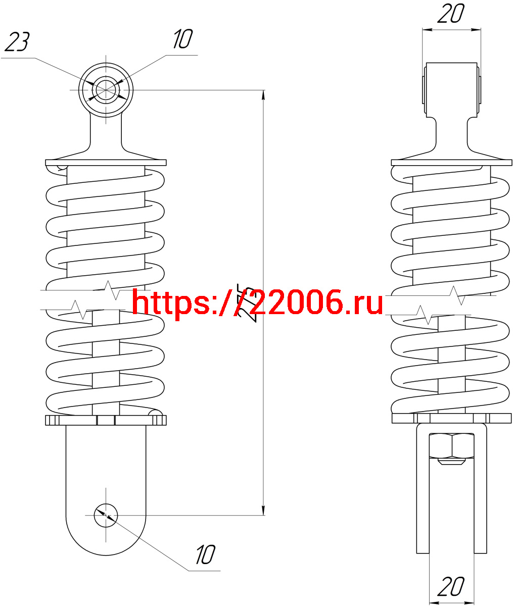 - Амортизатор зад. L-275, D1-23, d1-10, H1-20, d2-8, H2-22 ухо/вилка SUZUKI AD50 AF-1641 в Полевском недорого