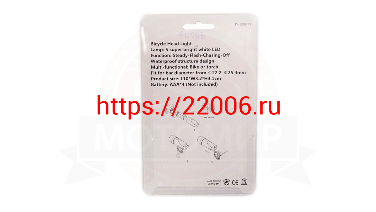 - Фара Вело передняя, 5 диодов, 98x30x69мм, материал ABS (4 батарейки ААА) (EBL 016-1) в Полевском недорого