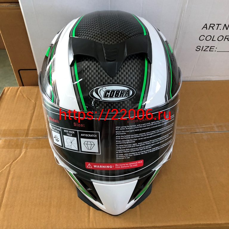 - Шлем интеграл COBRA JK311, белый с черным и зеленым(9), размеры L в Полевском недорого